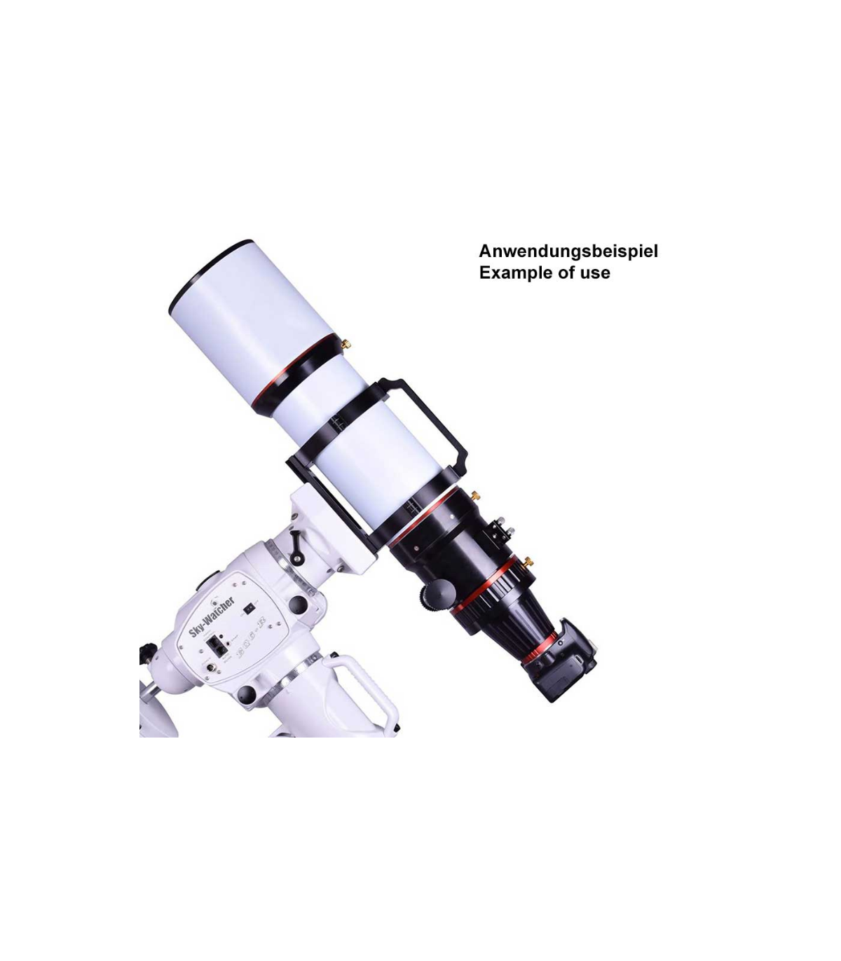 ♦ Una generosa distancia de trabajo también permite la conexión de diagonales de estrella de 2" para observación, se incluyen adaptadores adecuados de 2" y 1,25".