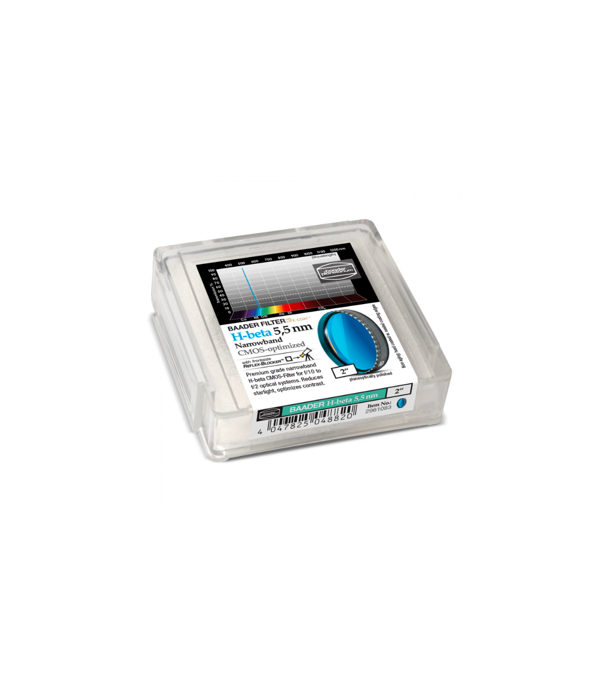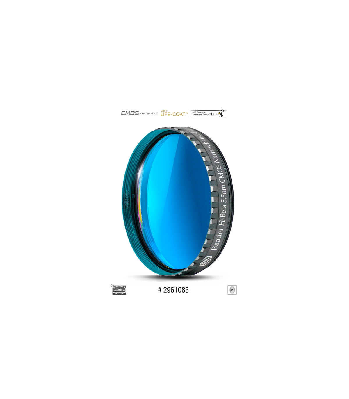 Filtro de banda estrecha Baader CMOS H-Beta de 2" x 2 mm - Grado de precisión - con rosca de 2" (M48)