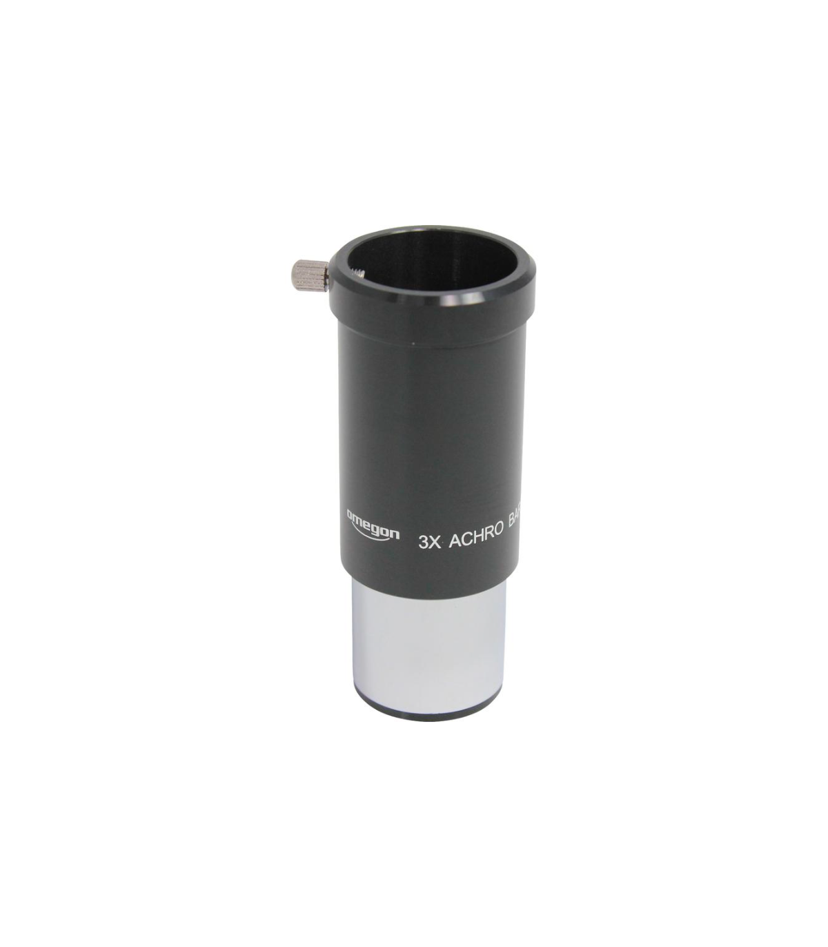 La lente Barlow 2x/3x de Omegon triplica el aumento cuando se usa junto con un ocular. El ocular de 1,25" simplemente se inserta en la lente Barlow y se asegura con el tornillo de bloqueo lateral. Luego inserta el conjunto completo en el enfocador. Por ejemplo, si normalmente obtiene un aumento de 20X con su ocular, luego se aumenta a 60X con el ocular. Lente Barlow de Omegon Si desea prescindir inicialmente de tener que adquirir un juego completo de oculares, entonces esta lente Barlow se ajusta a sus necesidades.