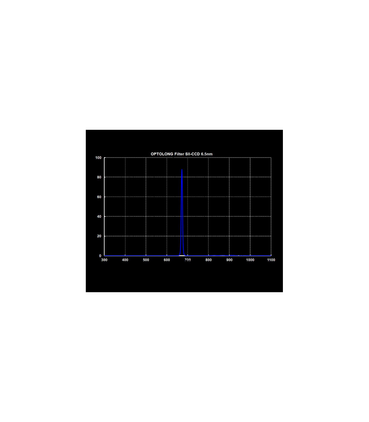 The 6.5nm SII CCD Extra Narrow Band Filter is designed for observing nebulae with a bandwidth of only 6.5nm and a central wavelength of 672nm, which corresponds to the emission line [S III]. Transmission at the other wavelengths is extremely low, particularly those radiating artificial light sources such as mercury vapor and both types of sodium vapor lamps, but also unwanted natural light emitted by neutral oxygen in the atmosphere (brightness of the sky).