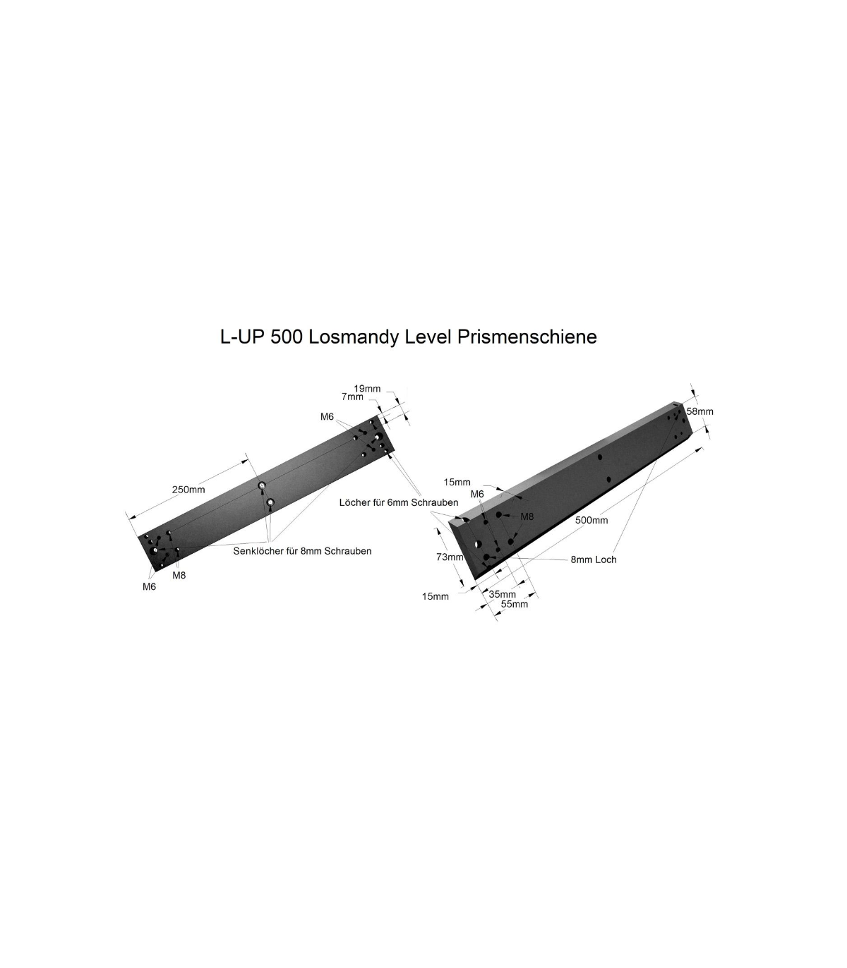♦ 2 holes for 6mm to 8mm screws at the end of the rail - hole spacing 47cm