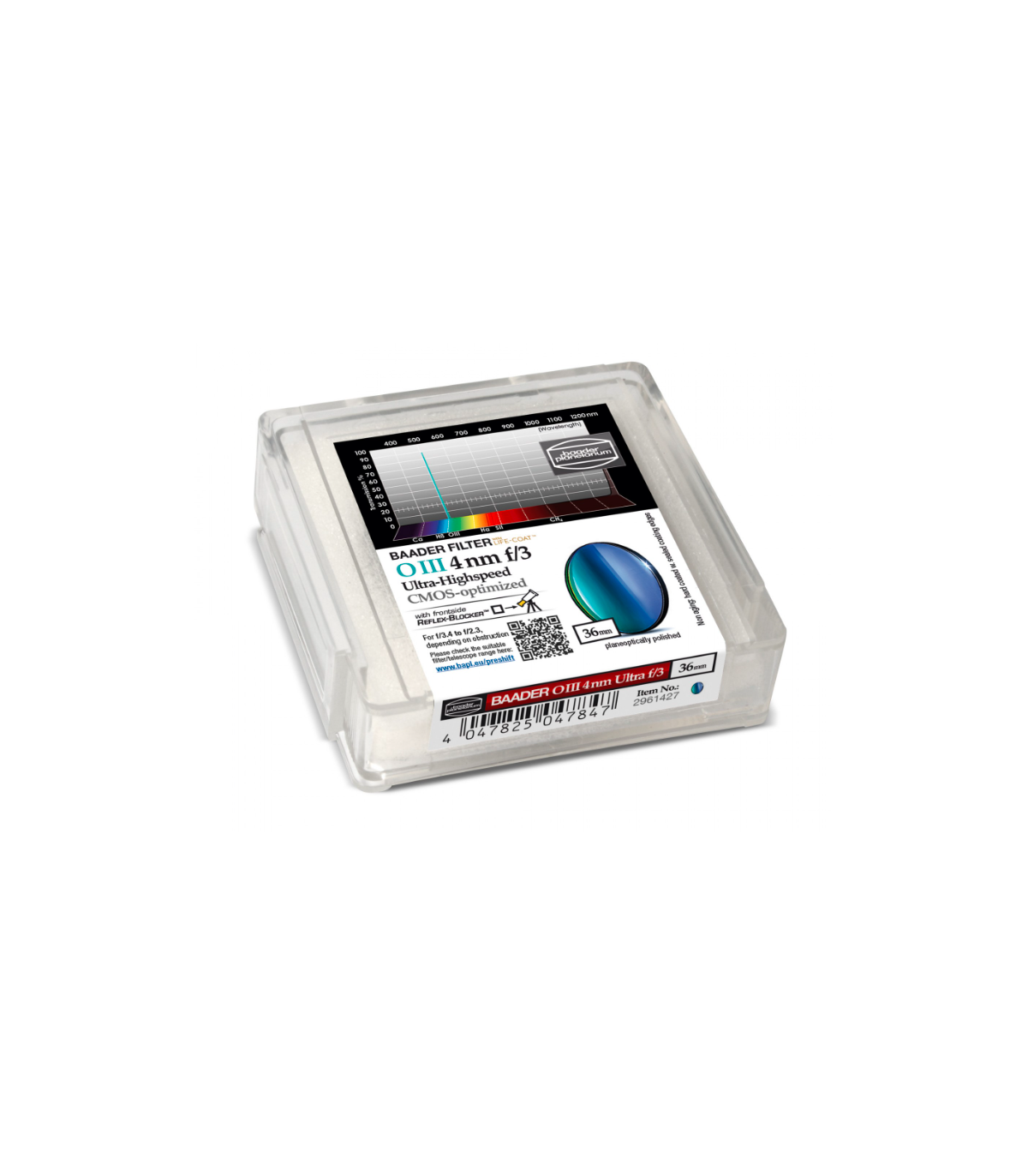 Baader CMOS O-III f/3 36mm x 2mm Ultra High Speed Filter - Premium Grade
