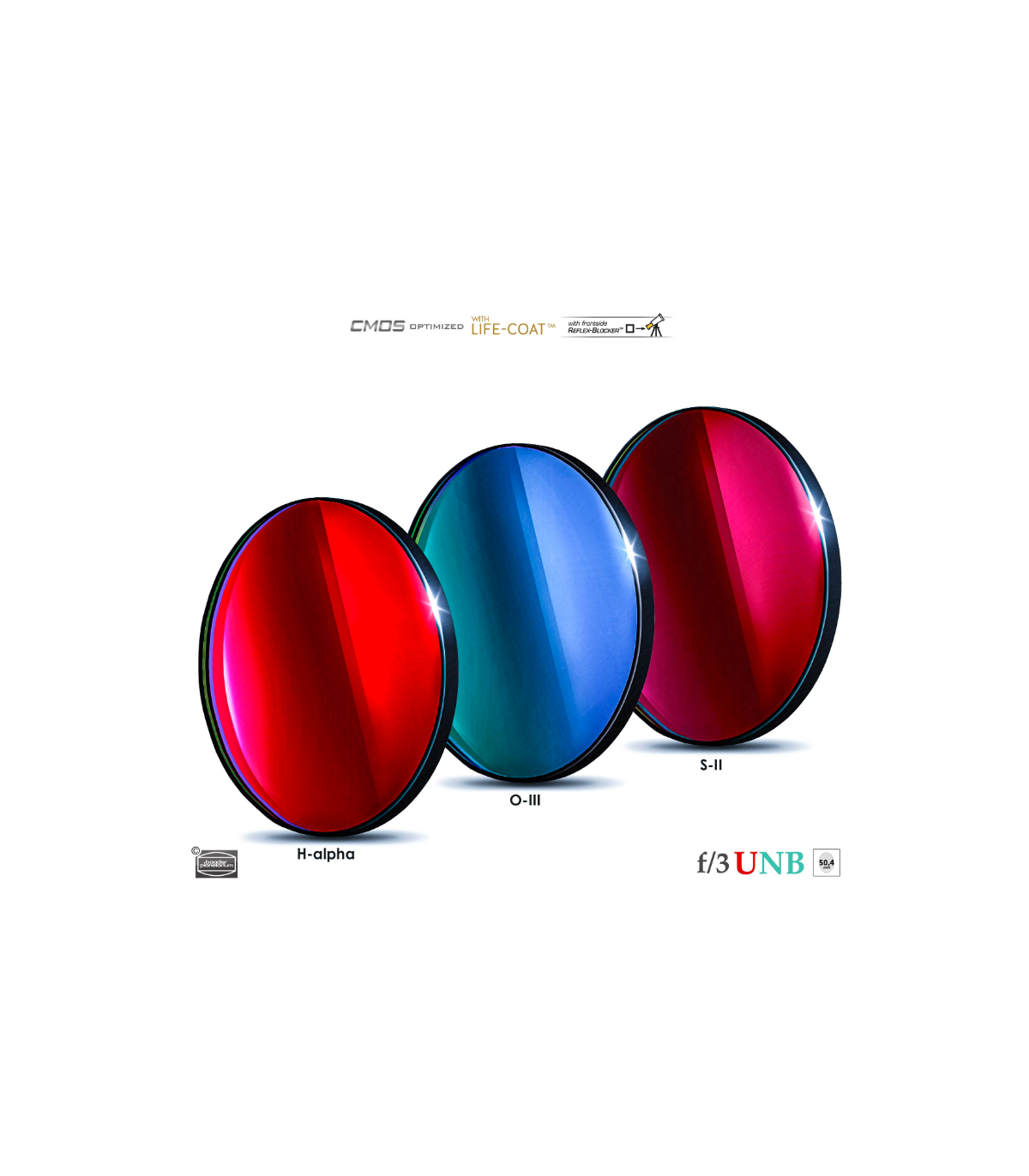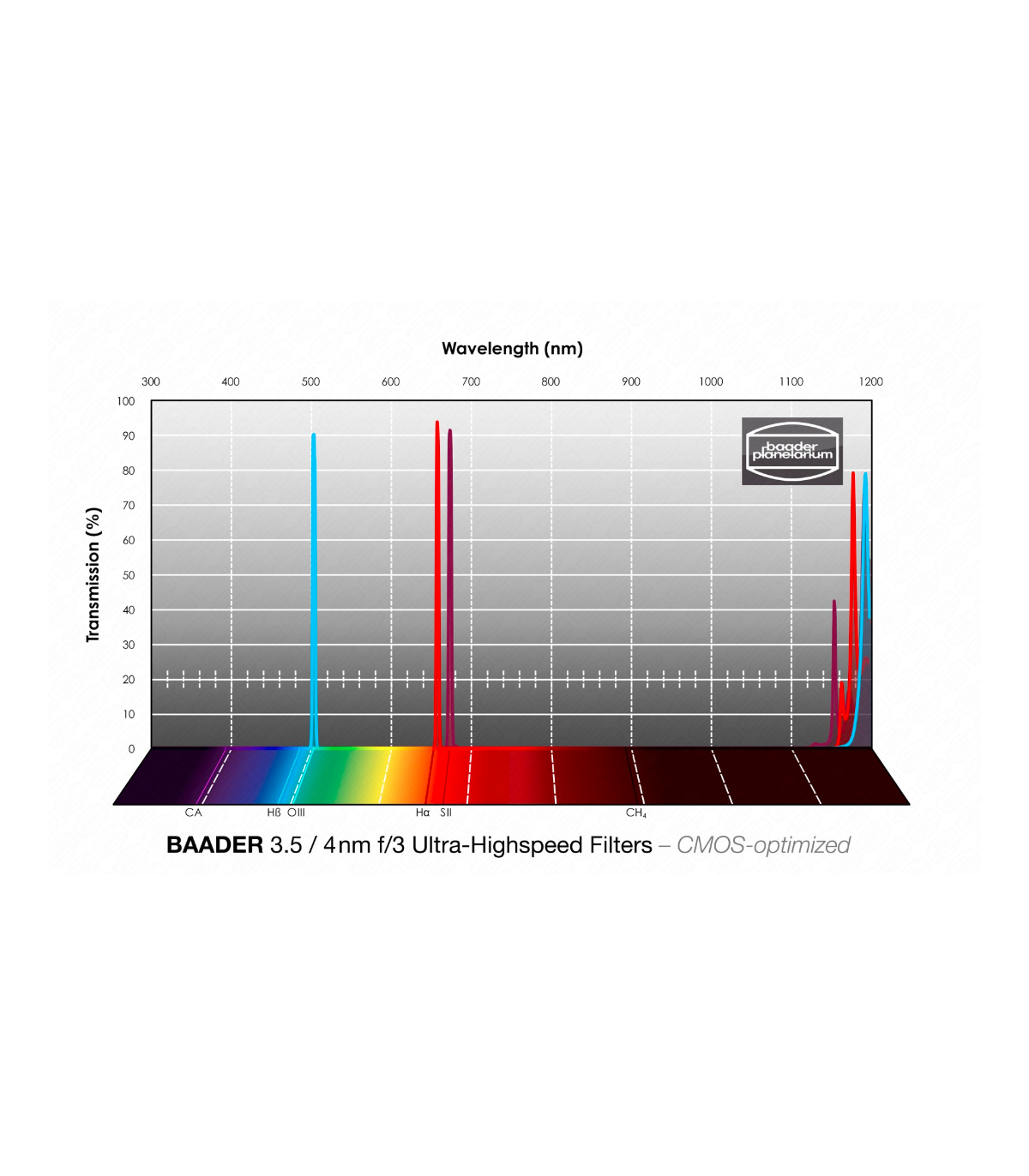 3.5 / 4 nm FWHM (to harmonize the exposure time of H-alpha with O-III / S-II), recommended for fast optical systems from f/3.4 to f/2.3