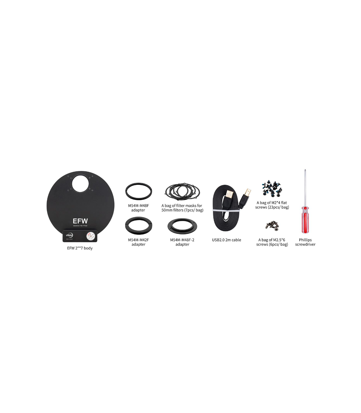 ZWO's latest EFW (Electronic Filter Wheel) offers a larger free aperture than previous filter wheels, but it's still not heavy - it only weighs 650 grams!
