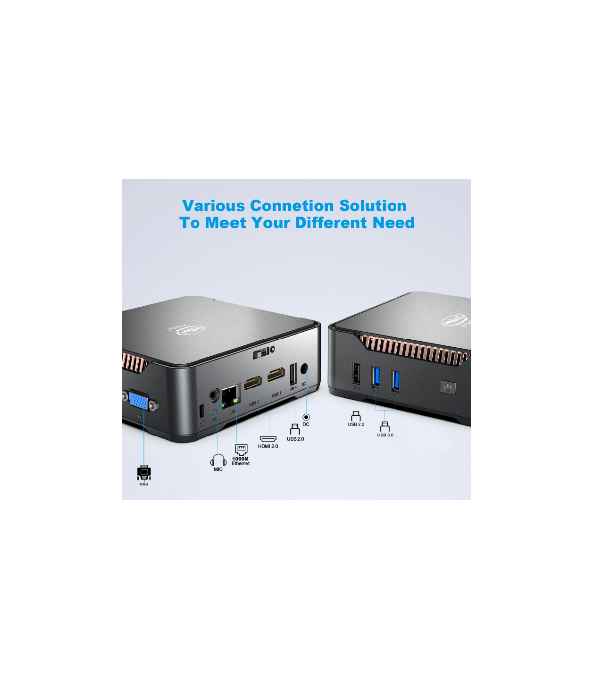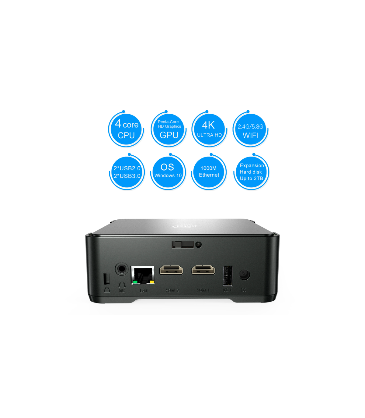 GPU: Intel UHD Graphics GPU450MHz up to 800MHz;Support 4096*2160@60Hz